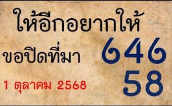 ถ่ายทอดสดหวย646*58!!ไม่ต้องกลับ ตัวเดียว บน+ล่าง งวดนี้ลงให้แล้ว…ดูเลย งวดวันที่1 ตุลาคม 2568 Read More